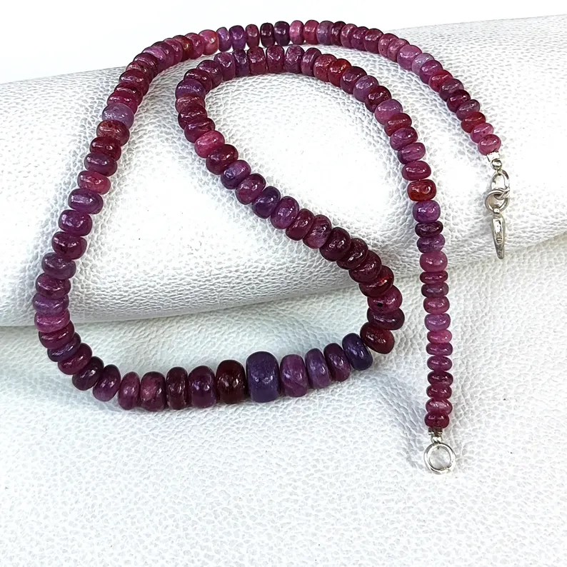 Myanmar Ruby Gemstone, 5-10mm Smooth Rondelle Beads, 17.5-Inch Necklace
