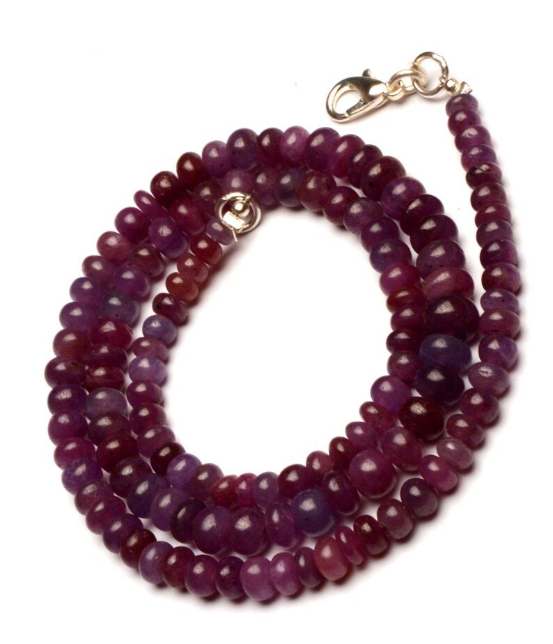 Natural Myanmar Burmese Ruby 5 to 7 mm Size Smooth Rondelle Beads – 17.5 Inch Necklace