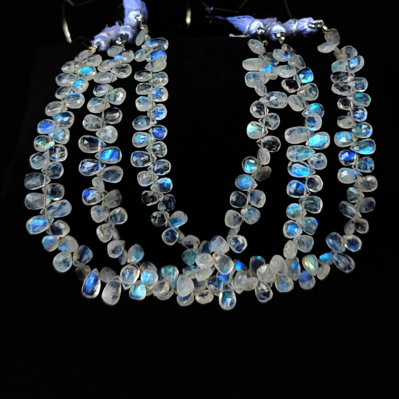 Natural Rainbow Fire Moonstone 7×5 mm Size Faceted Pear Briolettes Beads 8″ Strand